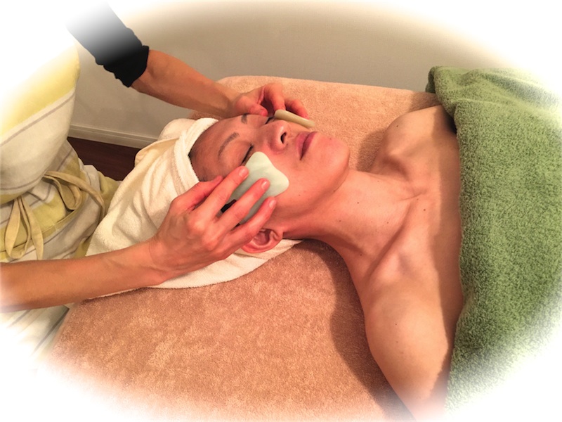 - クレンジング→泡洗顔→オイルトリートメント→陰陽スティック(ツボ・経絡マッサージ)→玉石かっさ(鎮静・美白)→真珠粉入り漢方パック